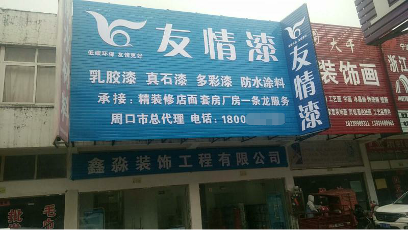 在裝修中大量運(yùn)用到的涂料,鑫淼裝飾工程有限公司直接從生產(chǎn)廠家進(jìn)貨,通過和來(lái)自中國(guó)首個(gè)涂料之鄉(xiāng)——廣東順德的友情漆建立加盟合作關(guān)系,成為友情漆周口油漆代理,確保在材料供應(yīng)的源頭上,保質(zhì)保量客戶放心,在市場(chǎng)上贏得口碑。