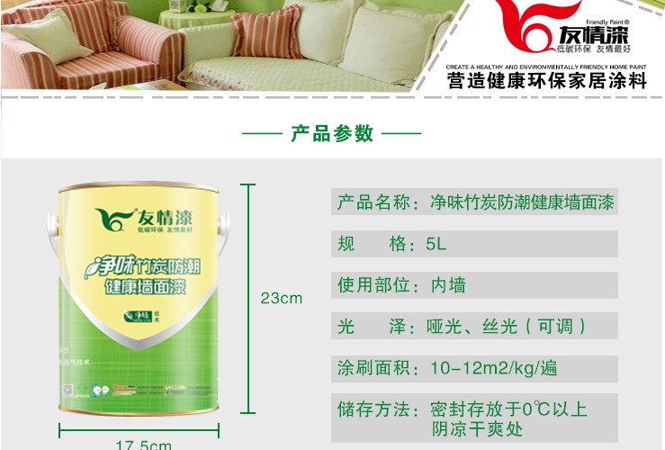 友情漆 凈味竹炭防潮健康墻面漆