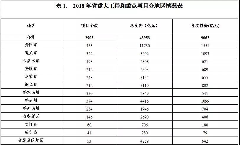 2018年貴州省重大工程和重點項目名單公布——安排省重大工程和重點項目2903個、年度投資目標9062億元