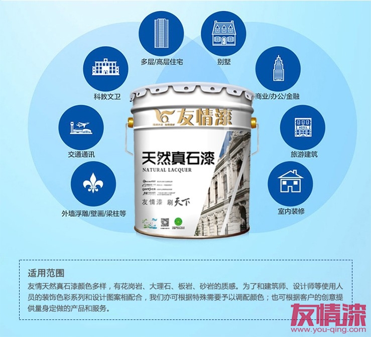 目前,真石漆應用范圍更是日益廣泛,發揮的裝飾作用也在變大。